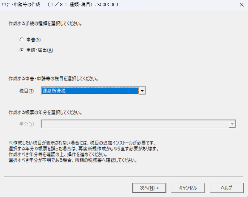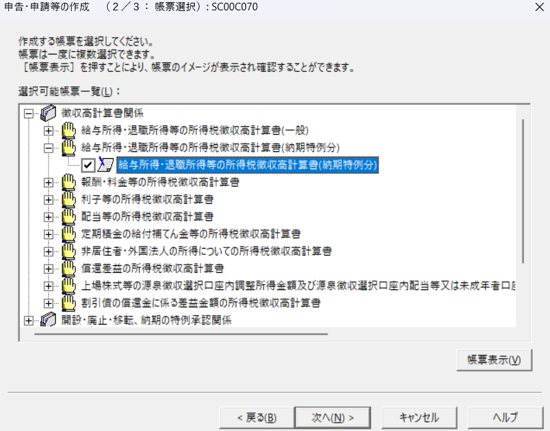 2. メニューから「所得税徴収高計算書の作成」